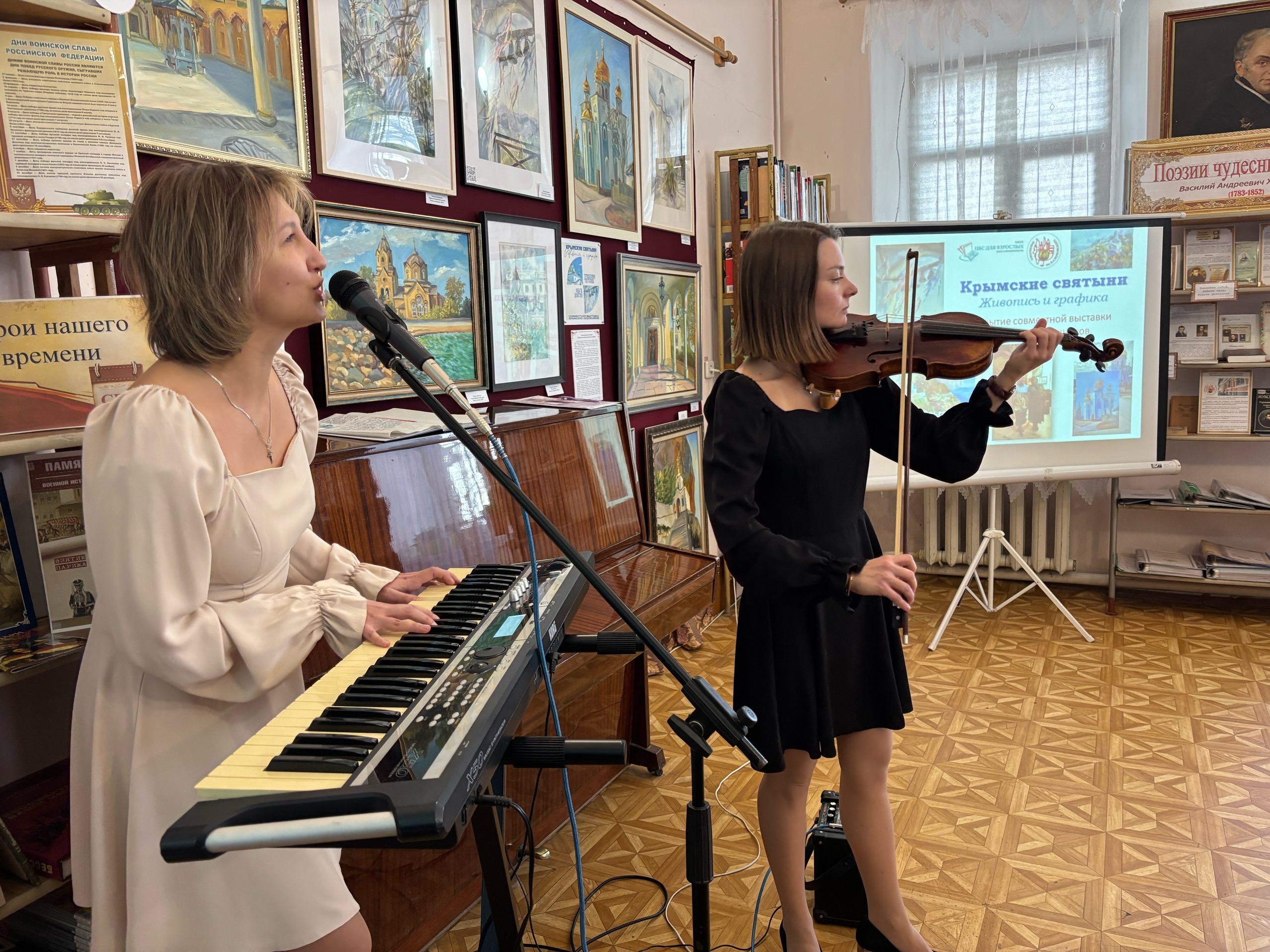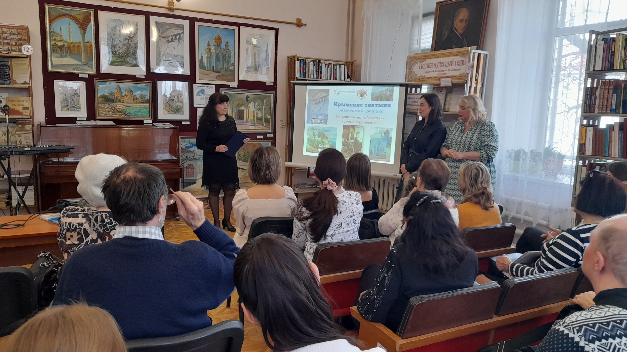 Представляя художников, библиотекарь отметила, что данная выставка, словно умелый экскурсовод, проводит зрителя по крымским святыням, дарит спокойствие и умиротворение, безмолвно вовлекает в мир добра и света православного мира.